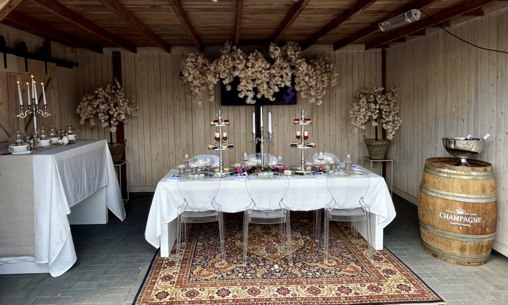In het assortiment zijn mooie tafels en elegante queens stoelen (transparant) voor Afternoon Tea zittend aan tafel. Dit kan tot grote groepen.