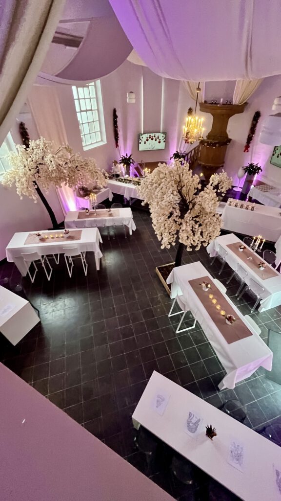 Voor dit concept werken wij samen met het Leopoldskerkje in Meerssen, een prachtige, karaktervolle locatie waar wij inmiddels mooie evenementen hebben mogen verzorgen. Zie onderstaande foto’s voor een impressie.